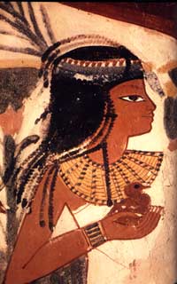 Bien plus tard, au Nouvel Empire, on a pu constater que de hauts personnages possédaient des pions à doubles faces circulaires, en ivoire, gravés au nom de leur titulaire. Ainsi connaît-on de petits pions, formés d’un disque de terre cuite émaillée polychrome, servant de socle à des images qui évoquent un animal bénéfique - dont le guépard - et d’autres disques supportant un prisonnier asiatique ou africain, les mains liées derrière le dos, ce qui paralysait d’avance l’attitude du sujet.