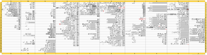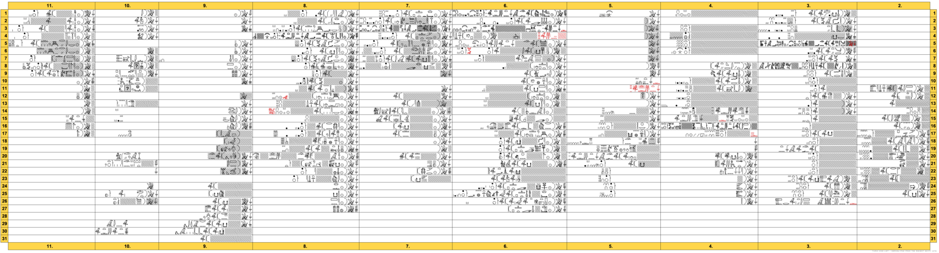 Le papyrus est divisé en onze colonnes, réparties comme suit :