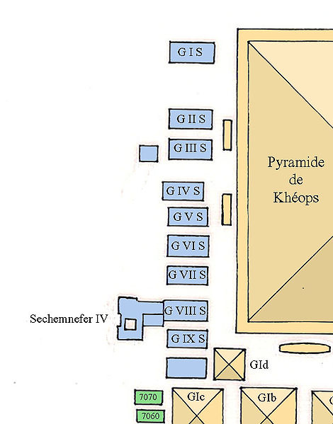 Ce cimetière, situé juste au sud de l’enceinte du complexe de Khéops, est dominé par neuf grands mastabas dont quelques uns ont pu être attribués à des personnages contemporains du règne de Mykérinos. Entre ces sépultures se trouvent de nombreux monuments datant de la Ve et de la VIe dynastie. Au sud-est de ce cimetière se trouve l’imposant mastaba du vizir de la Ve dynastie, Sechemnefer IV. Son accès se fait par une rampe flanquée de deux obélisques menant à une entrée à deux colonnes.